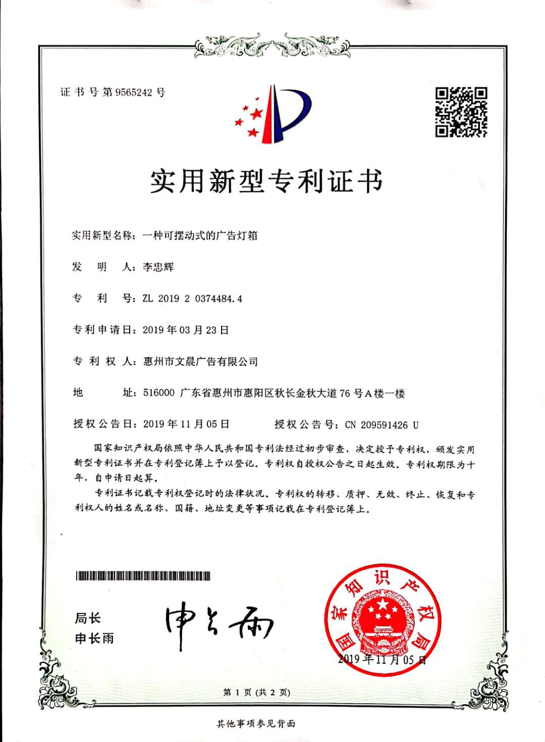 惠州市文晨燈箱科技有限公司,創(chuàng)建于2012年4月,坐落在惠州市惠陽區(qū)美麗的歷史文化名鎮(zhèn)秋長鎮(zhèn),毗鄰革命先烈葉挺將軍故居。惠州市文晨燈箱科技有限公司創(chuàng)建以來,一直秉著客戶至上!品質(zhì)為先!服務(wù)為重的經(jīng)營理念。嚴(yán)格要求自我!以客戶的標(biāo)準(zhǔn)不斷完善產(chǎn)品的質(zhì)量,追求更好的服務(wù)客戶...
